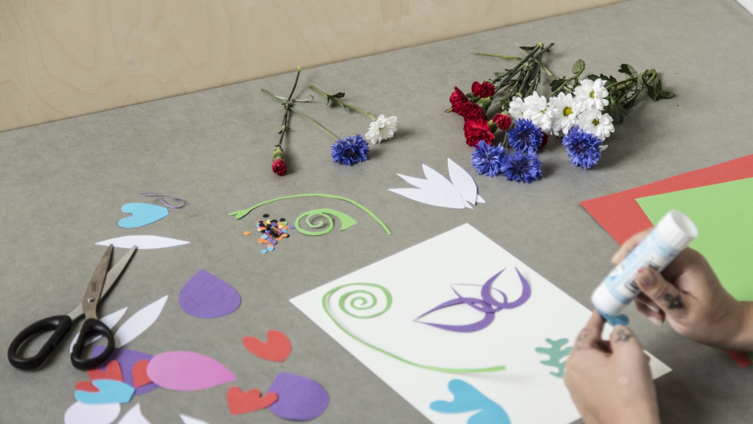 På den här sidan hittar du kreativa workshops och uppgifter som du enkelt kan göra hemma. Prova på blåsteknik med sugrör, gör din egen pappersperuk, lär dig trycktekniker och mycket mer.