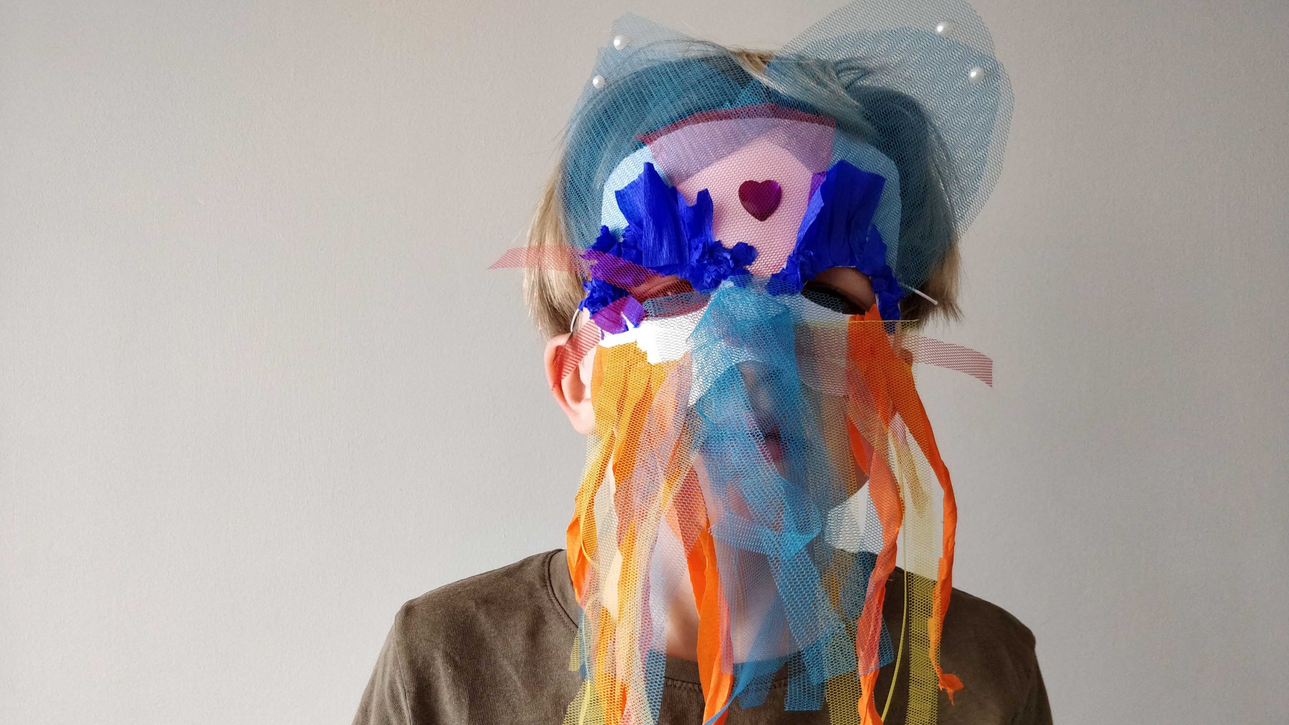 Hur kan masker bli hemliga, mystiska, lustfyllda eller läskiga? Under påsklovet skapade vi masker med inspiration från textilkonstnären Kiyoshi Yamamotos textila tryck och skulpturala verk. På den här sidan får du veta hur du gör din egen mask.