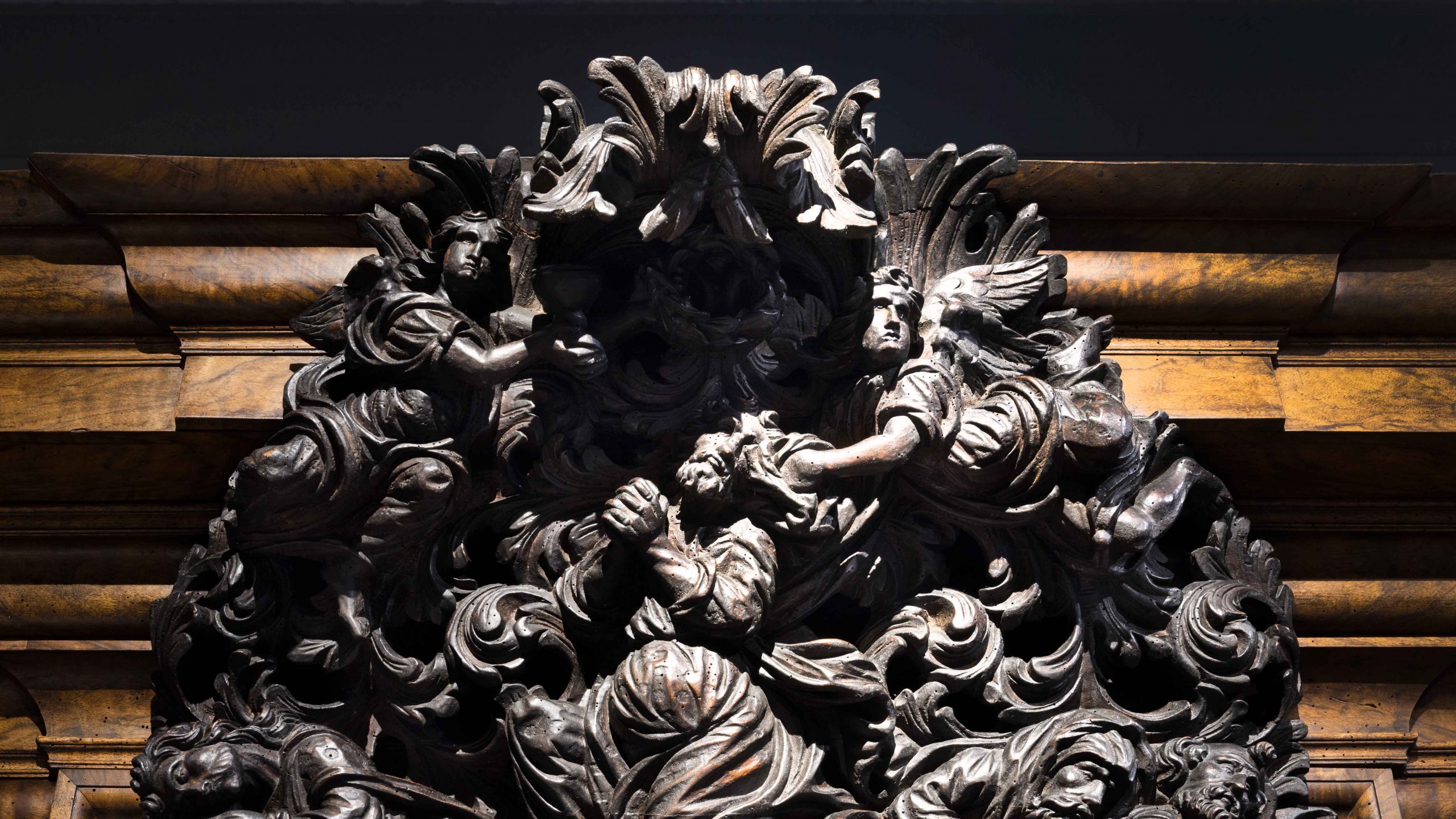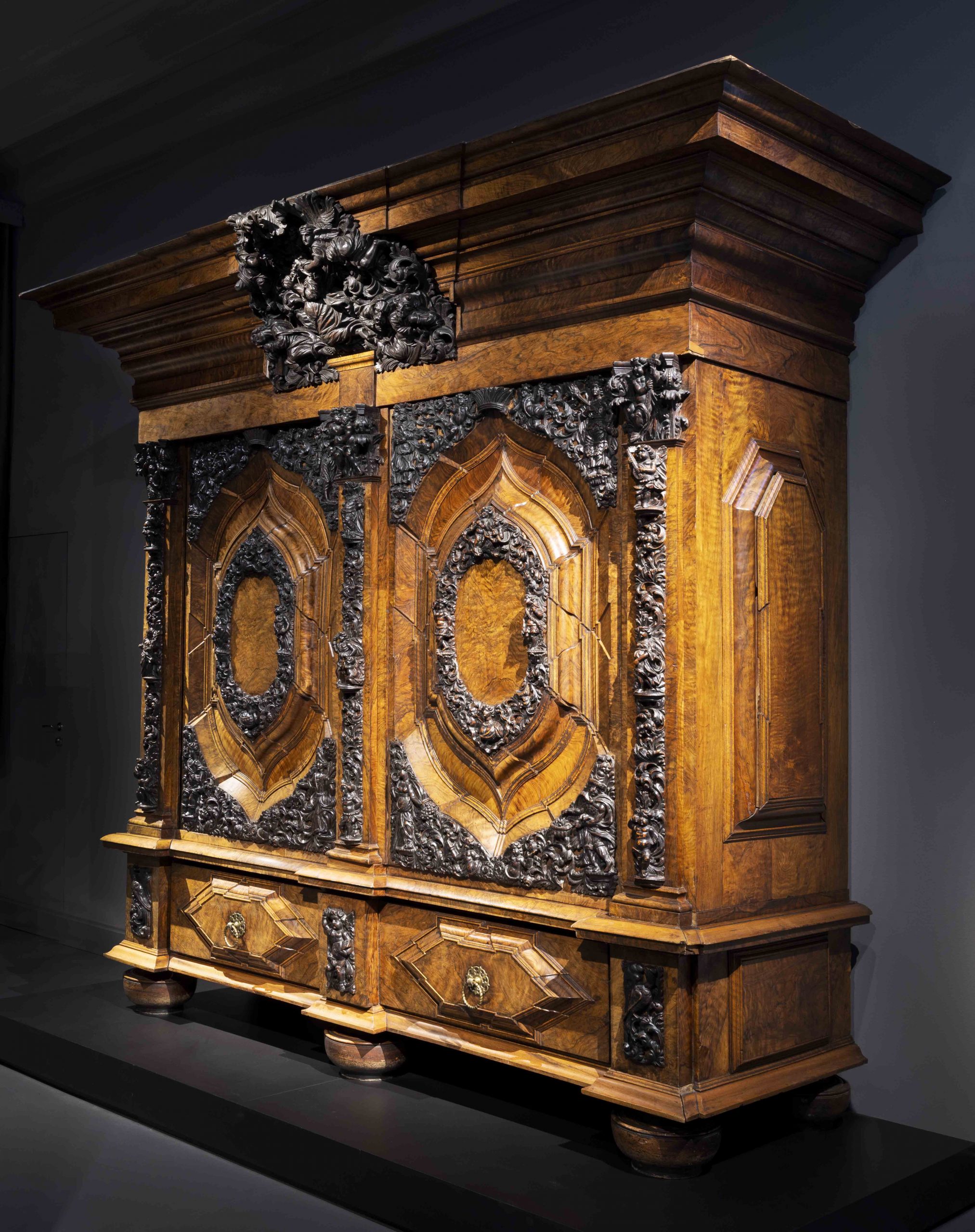 Toppbild & bild: Hamburgerskåp, ca 1700-tal, bredd: 290 cm, djup: 120 cm, höjd: 260 cm. Foto: Ina Winther Åshaug.