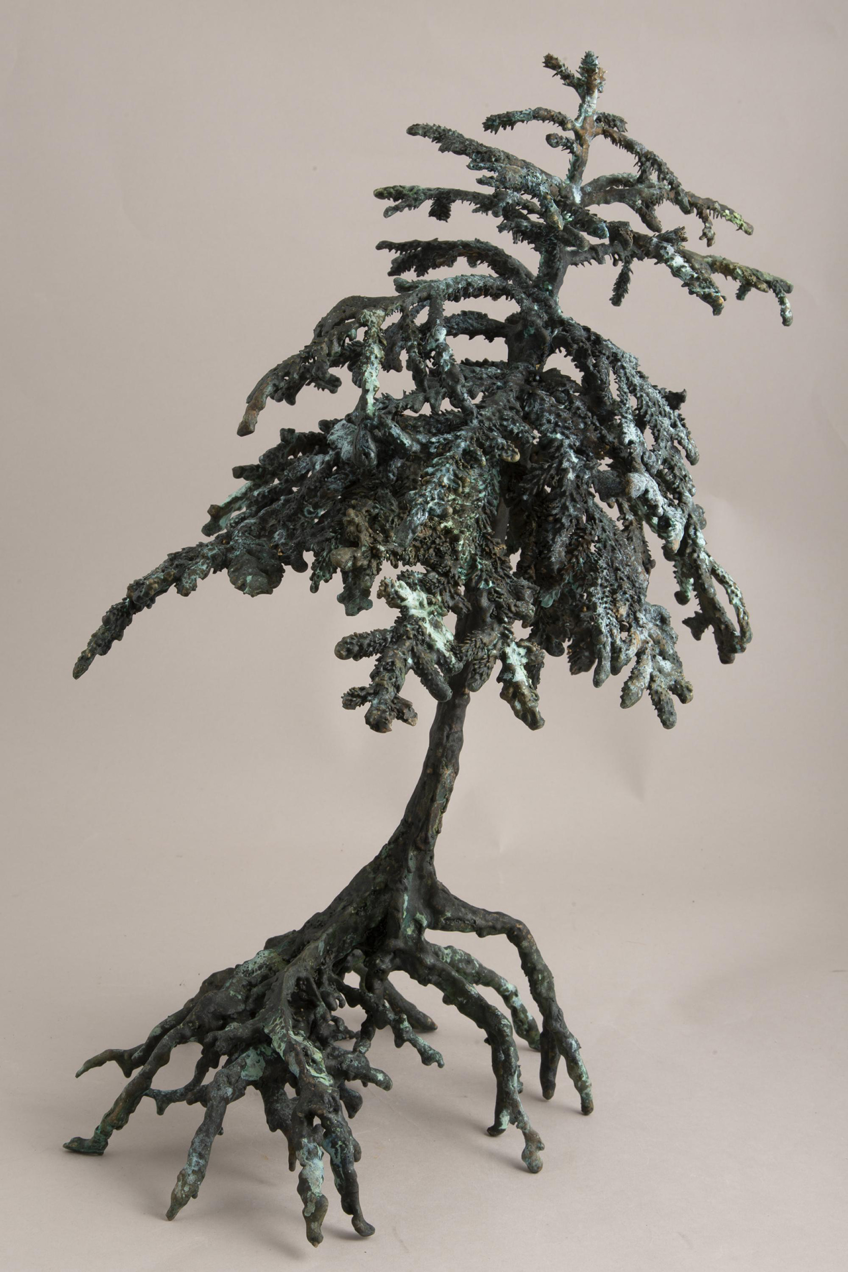 Ellen Ehk is a Swedish designer and artist, educated at HDK, Högskolan för Design och Konsthantverk. As a child, she spent a lot of time in the old forest behind her childhood home and the forest often reappears in her art. The bronze sculpture Night tree #16 is part of a series with several trees. The sculptures represent moonlit night fir-trees and represent a childhood memory that the artist carries with her, filled with missing and loss of the trees that quietly received her fantasies and thoughts when she was a child. Real plants and twigs were used as a model for the sculptures.