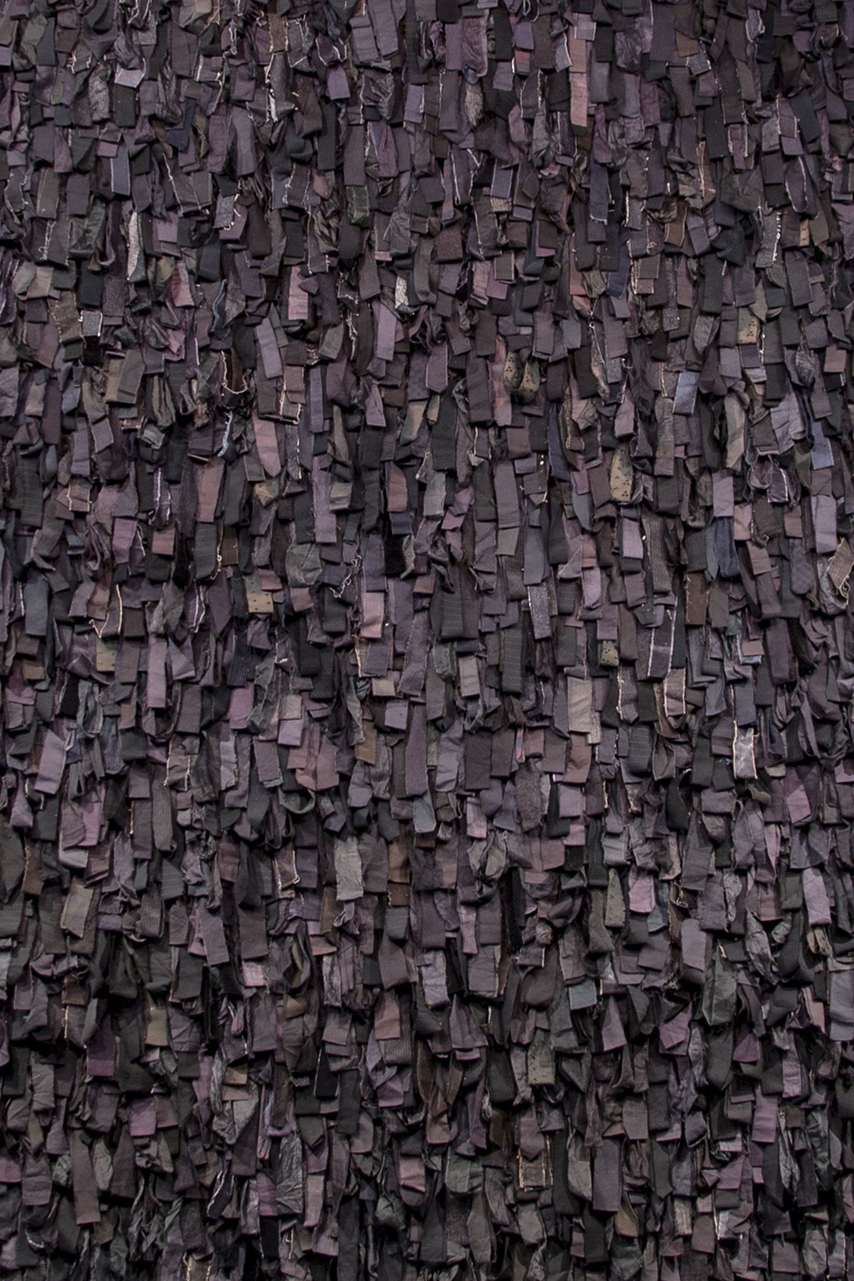 Svart Rya was one of Pasi Välimaa’s first significant woven textiles that and took an entire year to complete. The rya is woven from various fabrics that have all been bath-dyed to create multiple variations that animate the weaving, using fabrics of many different materials such aswool, linen, cotton and silk. One of the fabrics included a dress the artist’s mother wore when she was pregnant with Välimaa and therefore held a great emotional connection.