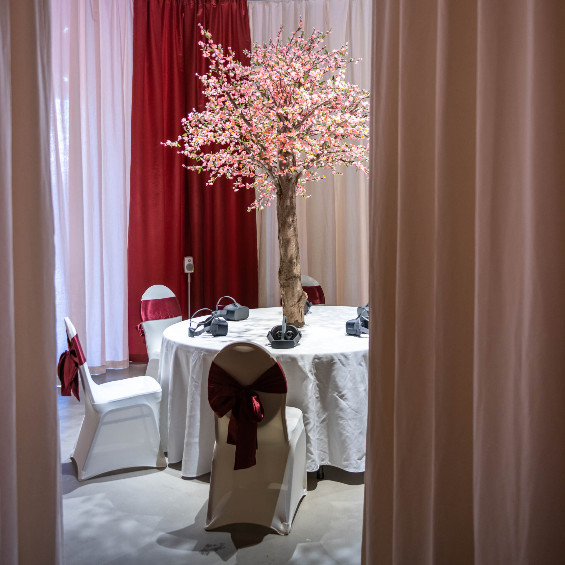 Installationen Phantom Banquet består av en restaurangscen där bordet dukats med VR-glasögon. Filmerna som visas i glasögonen bygger på 3D-scanningar av New Peking City.