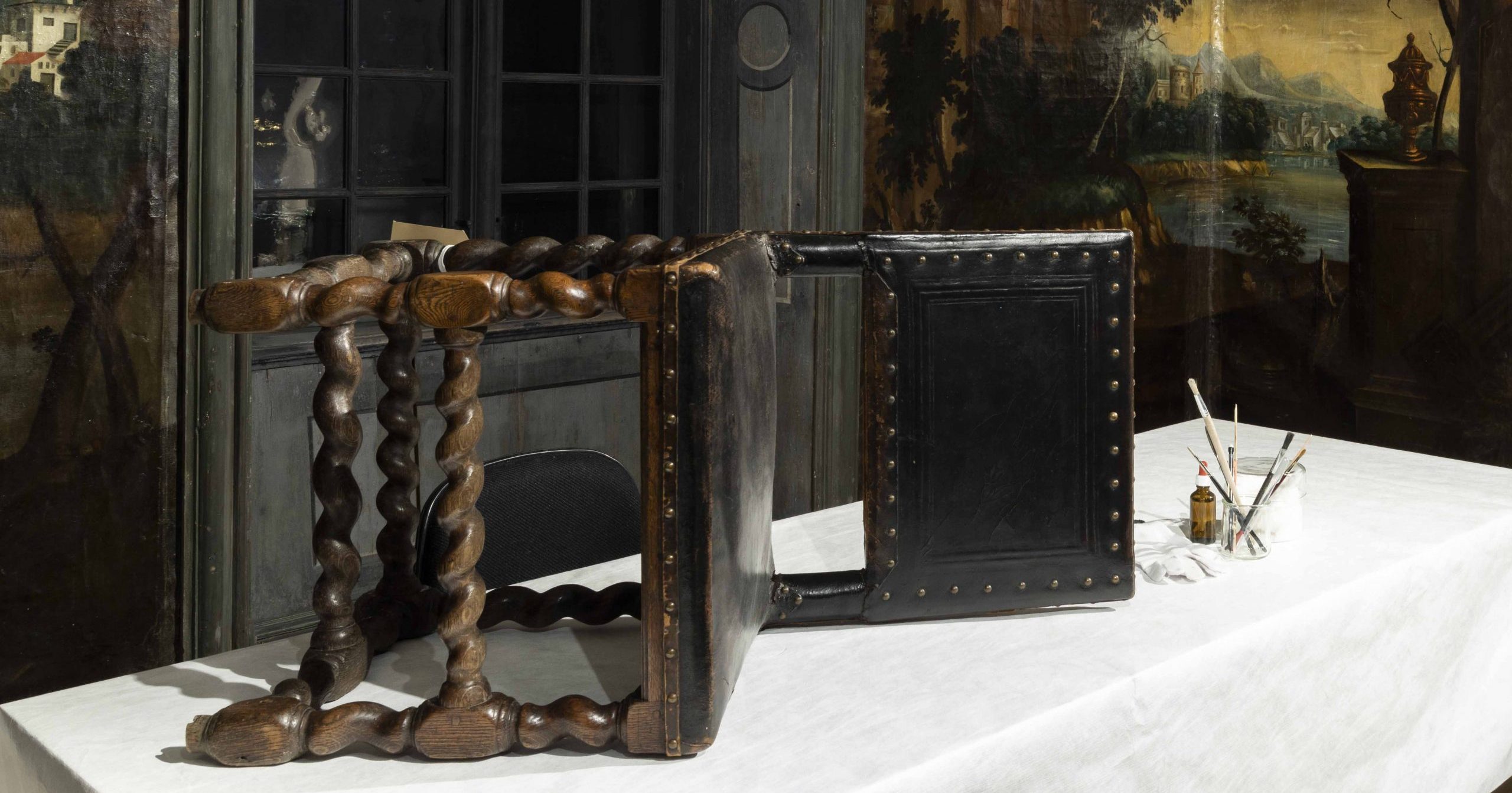 Toppbild & bild: konservering i Barockkammaren, foto: Ina Winther Åshaug.