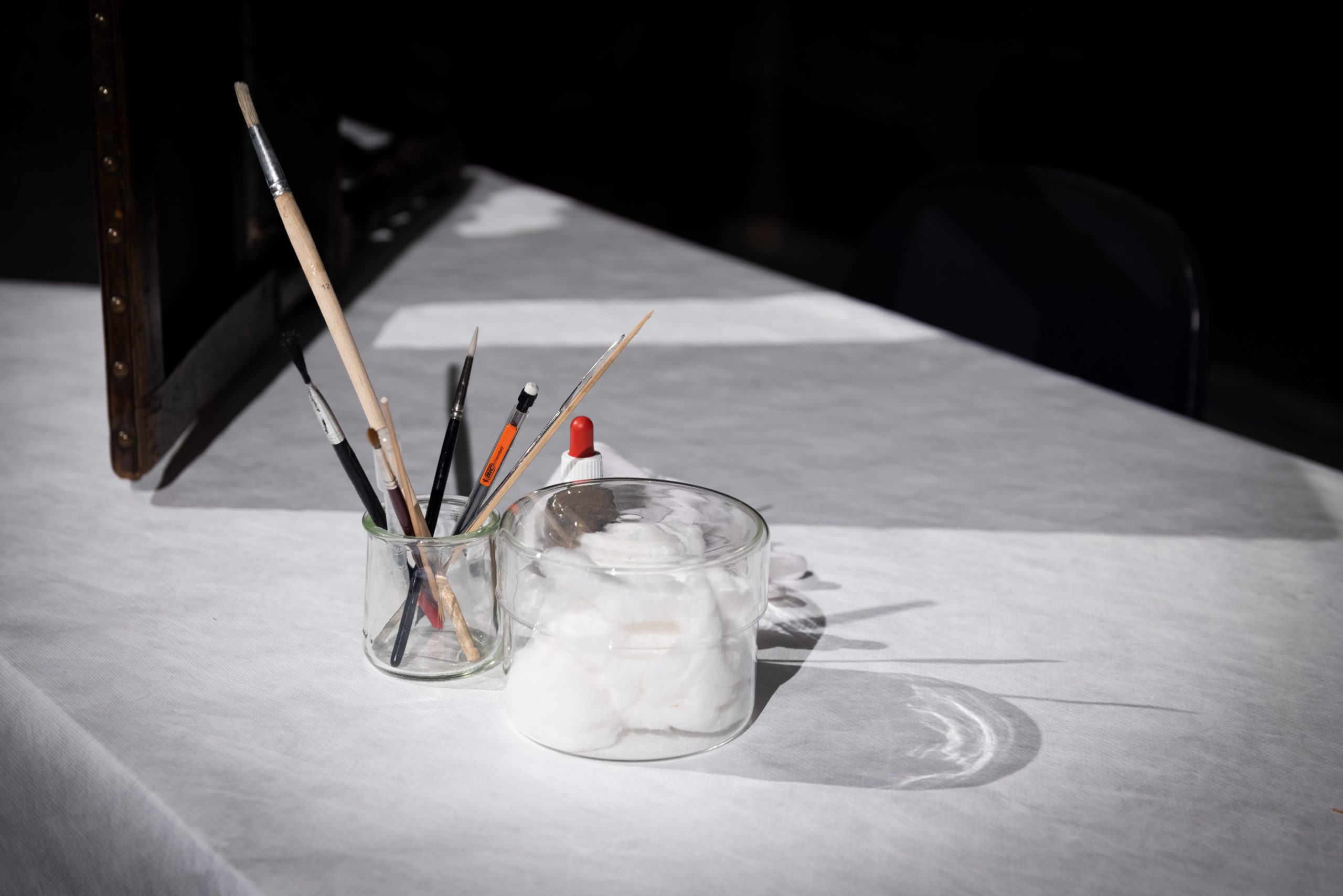 Föremålet Felicia Bengtsson arbetade med var en stol daterad till 1600-talet. Stolens stomme är av trä och har en stoppad sits och ryggstöd av bemålat läder som är fastnitat med äldre metallnubb. Stolen ska komma att ställas ut i en barockinteriör som ursprungligen har varit en del av Sockerbruket i Gamlestaden. Hon börjar med konditionsbedömning och utför löslighets- och rengöringstester för att utveckla en metod som passar till detta specifika objekt.