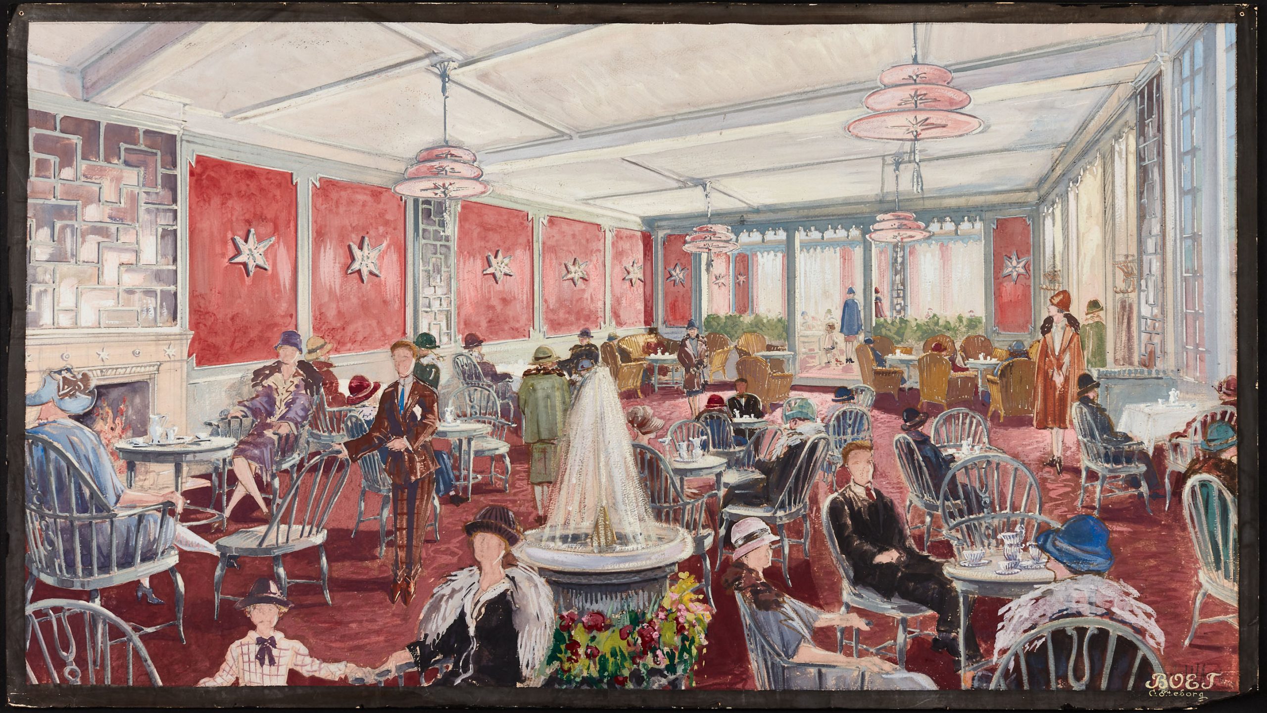Toppbild: Akvarell föreställande klubbrum för kontoristföreningen, Göteborg, 1928, Otto Schulz, Boet. Foto: Carl Ander, Röhsska museet.
