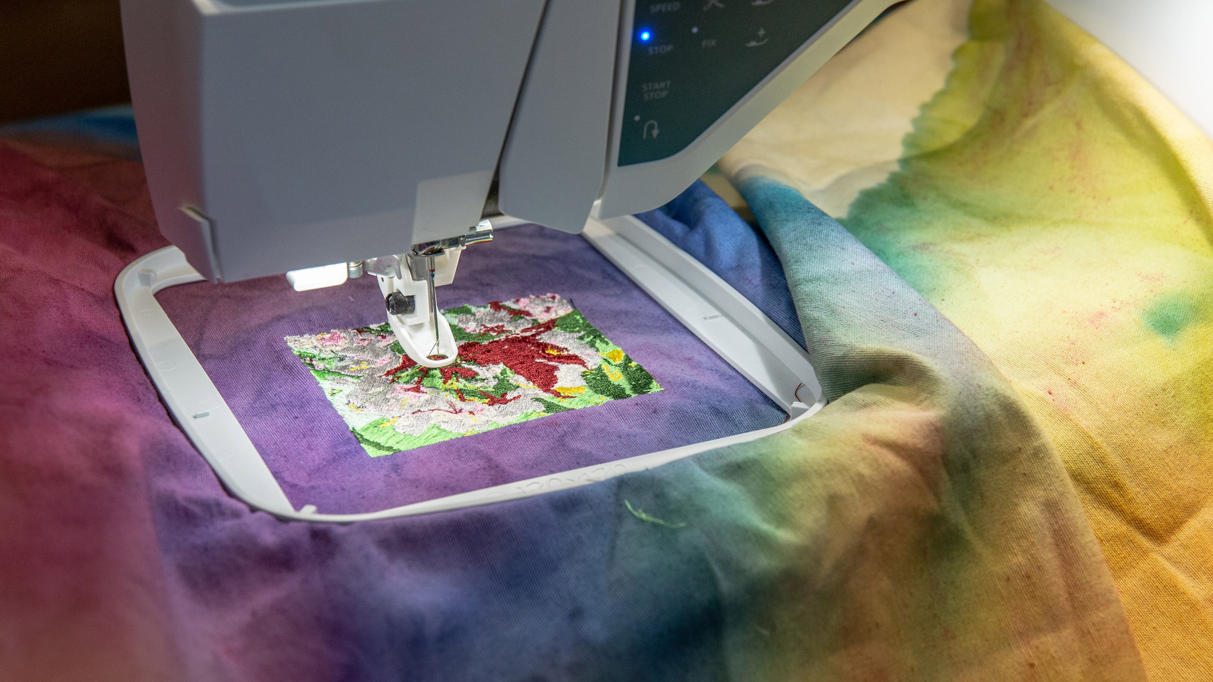 Gränsöverskridande, utmanande och lekfullt. Här kan du läsa mer om textilkonstnärens arbetsprocess och tidigare utställningar.