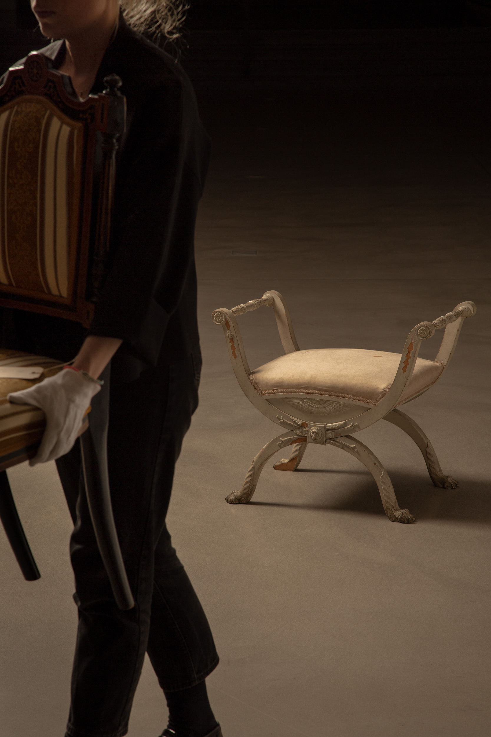 Röhsska museet har sedan det grundades förvärvat olika stolar för att illustrera rådande inredningstrender och ideal från de historiska stilepokerna. I det öppna magasinet i museets auditorium visas 144 av museets stolar från 1600-talet fram till idag.